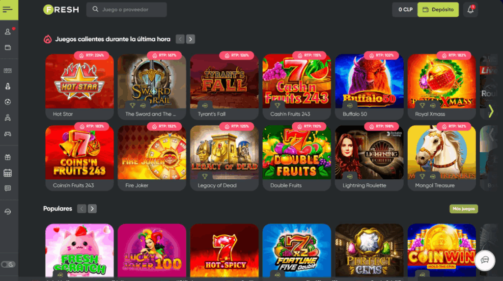 Fresh Casino, establecido en 2018, es una entidad notable en la industria de juegos en línea de Chile. La plataforma ofrece una extensa selección de más de 8,000 juegos, atendiendo a diversos intereses, ya sea que los jugadores prefieran tragamonedas, juegos de mesa o experiencias con crupieres en vivo. Los nuevos usuarios son recibidos con un atractivo bono de bienvenida, que iguala el 100% de su depósito hasta 600,000 Pesos Chilenos (CLP). Además, los jugadores regulares se benefician de promociones continuas como reembolsos semanales y giros gratis.