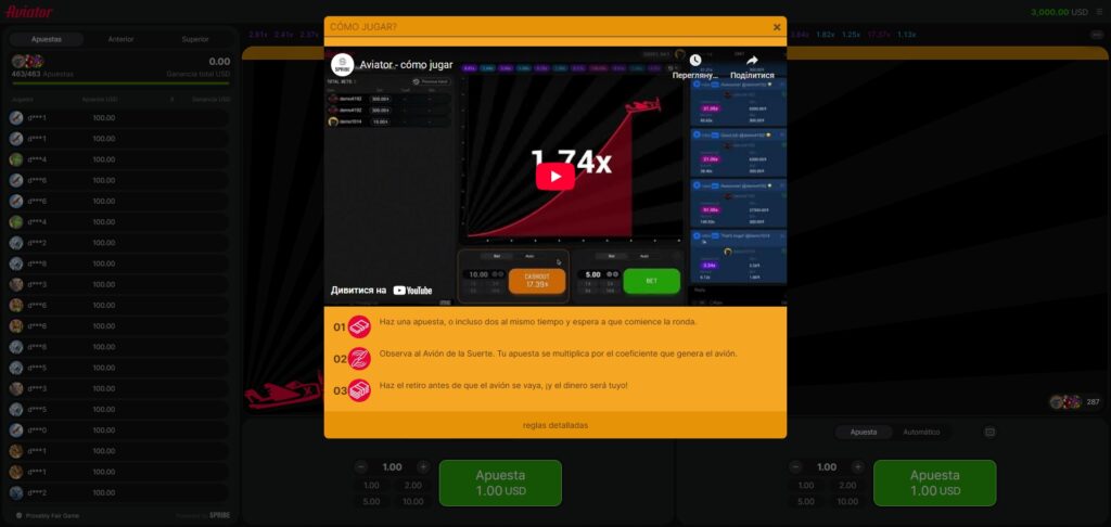| Proveedor del juego | Spribe | Reconocido por su innovación en juegos |